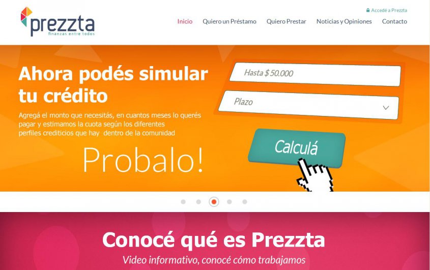 Prezzta es una plataforma en la que usuarios que tienen dinero para prestar pueden conectarse a otros que lo necesitan. A través de internet, los prestadores pueden ofrecer dinero por un mínimo de $ 10 mil, y los solicitantes pueden obtener dinero con una tasa efectiva anual que arranca en el entorno del 29,89%.